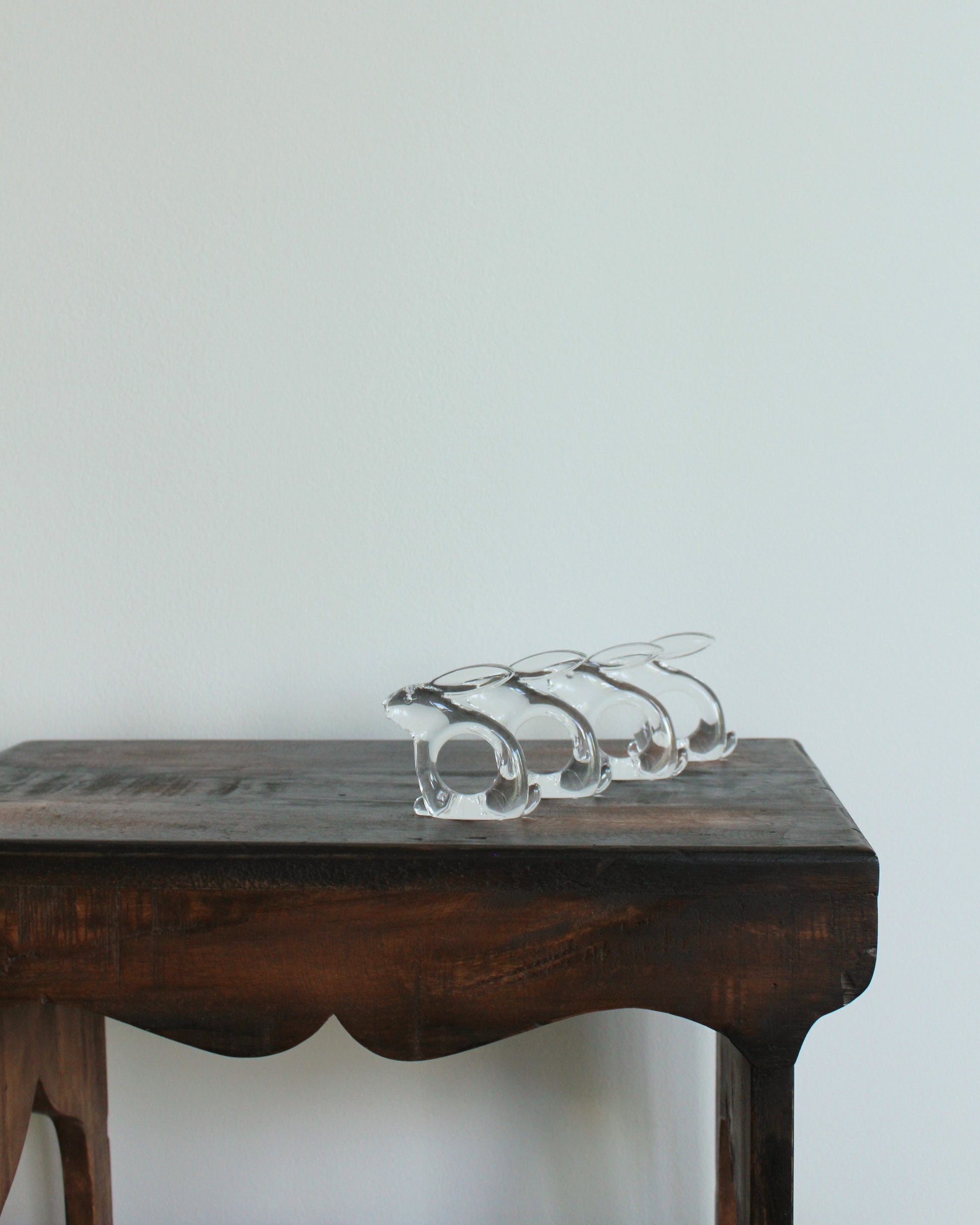 Clear lucite napkin rings, 20th Century, Taiwanese. Some light signs of age as expected. Set of 4