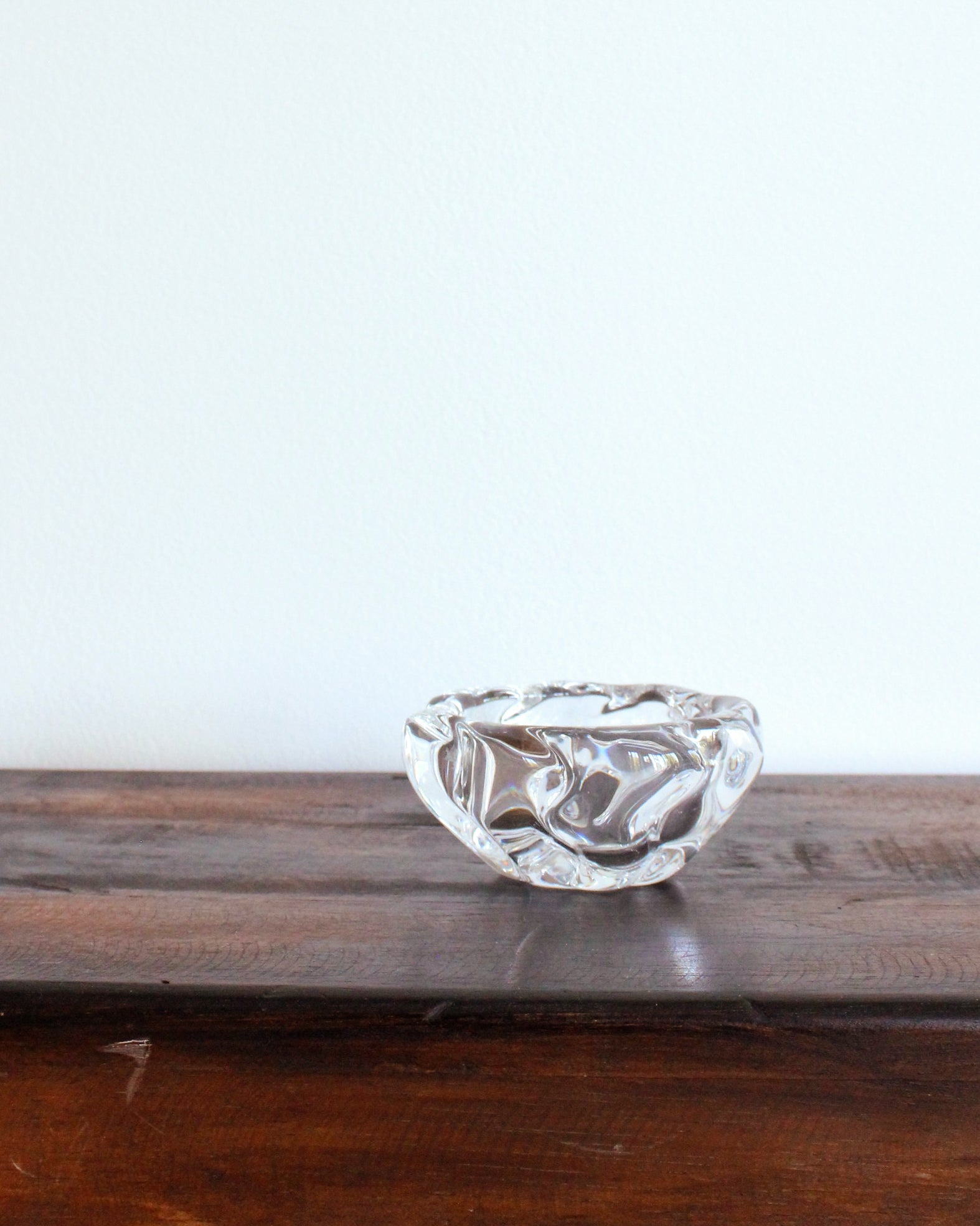 Small Daum France crystal free form bowl, anemone like shape. Very light signs of wear, signed on side.